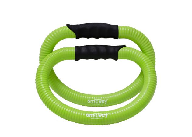 smoveyVIBROSWING® ist ein Schwungringsystem, bestehend aus einem Spiralschlauch, 4 Stahlkugeln und einem Griffsystem mit Dämpfungselementen. Die Masse beträgt ohne Schwungbewegung 500g und erhöht sich durch die Fliehkräfte beim Schwingen um ein Vielfaches.